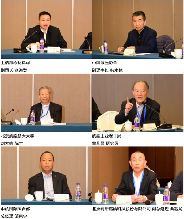 工業(yè)和信息化部原材料司副司長張海登、中國鍛壓協(xié)會副理事長韓木林、中航國際國合部總經(jīng)理鄒康寧、北京鋼研高納科技股份有限公司副總經(jīng)理曲敬龍出席會議并致辭。評審專家組由北京航空航天大學(xué)劉大響院士擔(dān)任組長,航空工業(yè)老干局曾凡昌研究員擔(dān)任副組長,原貴陽地區(qū)空軍總代表張宗林、中國鑄造協(xié)會首席專家薛紀(jì)二、中國航發(fā)沈陽黎明航空發(fā)動機有限公司原總冶金師陳仲強研究員、西北工業(yè)大學(xué)劉東教授以及北京科技大學(xué)姚志浩教授組成。