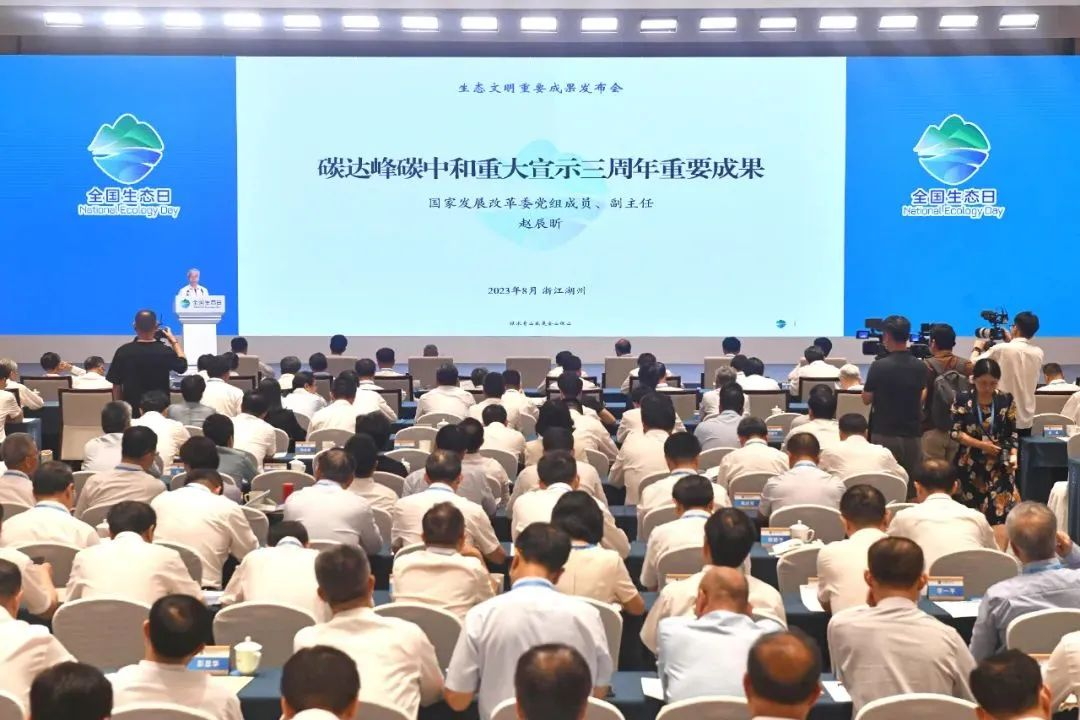 ▶▶▶ 關鍵詞:雙碳成果 2023年8月15日,全國生態日主場活動生態文明重要成果發布會上,國家發展改革委副主任趙辰昕發布碳達峰碳中和重大宣示三周年重要成果。成果顯示,累計完成煤電機組節能降碳改造、靈活性改造、供熱改造超過5.2億千瓦。把促進新能源和清潔能源發展放在更加突出的位置,全國可再生能源裝機突破13億千瓦,歷史性超過煤電。