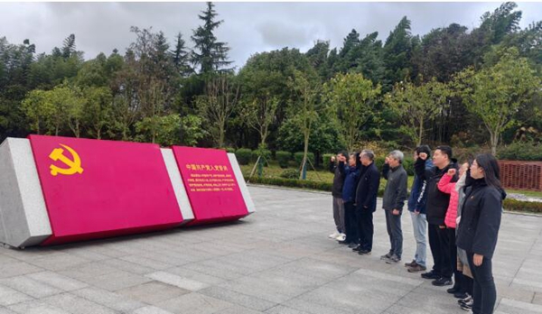 在講解員的引導下,通過聆聽無數(shù)革命先烈斗爭和流血的故事,深刻感受革命先輩們?nèi)倘柝撝、寧死不屈的革命斗志,感悟?zhàn)爭年代中國共產(chǎn)黨人和愛國志士堅持真理、堅定信念、百折不撓、英勇反抗的拼搏精神和不怕犧牲的大無畏氣概,使人為之潸然淚下。站在“貓洞”之外,遙想昔日的烽火與韜略,思考當下,加深了對革命先輩的崇敬之情,全體參加活動的人員的內(nèi)心有了更進一步的升華與提高,在紅色砂巖雕塑紀念廣場前,全體黨員高舉右手,支部書記 張金同志領(lǐng)誓,全體黨員面向黨旗重溫入黨誓詞,再一次莊嚴宣誓,全體非黨員同志肅穆站立,見證了宣誓,也向革命先烈致以崇高的敬意。此次愛國主義教育環(huán)節(jié)加深了系統(tǒng)內(nèi)人員對黨史的深刻印象,感受到中國共產(chǎn)黨走過的艱苦歷程和終將取得偉大勝利的堅定信心與決心,增強了黨員同志為行業(yè)服務的責任感與使命感。