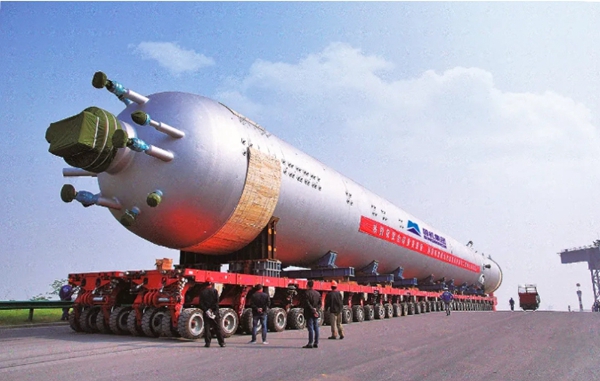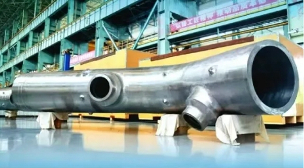 張曉侖:第三張產(chǎn)業(yè)印記是核電主管道,產(chǎn)業(yè)編碼是CAP1400。這是核電的一個(gè)主管道,相當(dāng)于人的大動(dòng)脈,它是連接反應(yīng)堆壓力容器、蒸汽發(fā)生器跟主泵之間的一個(gè)核心部件。進(jìn)入新世紀(jì)以后,國(guó)家的核電迎來(lái)了一輪高速發(fā)展時(shí)期。從引進(jìn)、合作到現(xiàn)在我們完全實(shí)現(xiàn)了自主設(shè)計(jì)、自主制造、自主建造、自主運(yùn)營(yíng)。這中間我們承擔(dān)的一個(gè)比較有代表性的就是這個(gè)核電的主管道。這個(gè)產(chǎn)品是實(shí)現(xiàn)核電完全自主可控,極為關(guān)鍵的一個(gè)部件。 鄭建能:我們首創(chuàng)并突破了冷彎成型技術(shù),攻克了大直徑、大壁厚核電主管道精確成型這一世界性難題,連續(xù)突破一系列關(guān)鍵核心技術(shù),使我國(guó)三代核電鍛造主管道制造技術(shù)達(dá)到國(guó)際領(lǐng)先水平。如果我們國(guó)內(nèi)不能自主生產(chǎn)制造,(我們)對(duì)于產(chǎn)品就沒有定價(jià)權(quán),就必須花費(fèi)巨資去采購(gòu)國(guó)外的產(chǎn)品。 2400噸