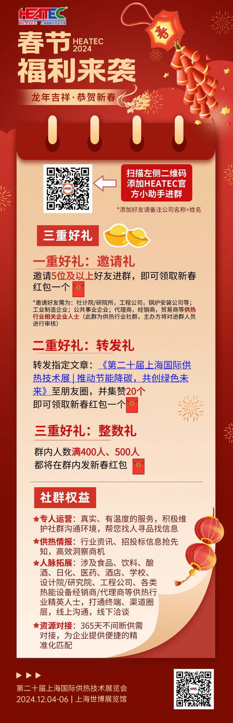 第二十屆上海國際供熱技術展(HEATEC 2024)將在12.04-06在上海世博展覽館舉辦,有些客戶會問:“展會要12月才開,現在定展位是不是太早了?” 當然不是,如今越來越多的展商在參展結束當天便提前預定了下一屆的展位,這就足以說明搶占先機的重要性! 那么提前占位有什么好處呢? 1、好位置意味好流量,好流量意味好效果 展會中展位位置各異,不同的位置帶來的客流量和推廣效果也不盡相同,企業需要根據自身參展需求及預算,合理選擇適合自己的位置和面積。然而,完美符合企業要求的展位是有限的,如果想要挑選一個合適的位置,就要搶占先機,以免被其它企業搶定,最后自己只能采取備選方案。 越早搶訂,留給企業的選擇空間就越大。 2、鞏固老客戶,開發新客戶,獲取更多訂單 2023年行業“內卷”比較嚴重,行業洗牌加速。2024年,為了在行業中宣示存在感,向客戶證明企業發展穩定,最好的方式就是參加專業展會。參加展會是產品面向大眾的最佳時機,如同登臺亮相,展會現場交流帶來的信任,是其他任何線上渠道都取代不了的。 主辦方深耕行業多年積累了一大批有采購需求的優質買家,因此在預定展位后到展會舉辦前的這段時間內,主辦方將通過各渠道助您吸引優質買家、新的客戶群體,為您帶來更多詢單和訂單。越早預定,獲取新客戶的機會就越多。 3、展位越早預定,享受宣傳增值福利也越多 企業參展的一大目的就是宣傳產品,提高知名度,從而打開更大的市場。企業提前預定展位后,會被組委會列入到宣傳計劃和相關宣傳資料中,能夠更好的借用展會宣傳的力量以及展會影響力提升企業知名度,企業也能因此獲得更長的宣傳期,在推廣產品中起到更好的效果。 作為供熱行業交流、合作的重要窗口,HEATEC上海國際供熱技術展已成為國內極具影響力的供熱行業新產品、新技術、新理念的交流盛會之一。第二十屆上海國際供熱技術展將于2024年12月4日-6日在上海世博展覽館舉辦,HEATEC深耕行業二十多載,展會影響力輻射全國各大地區,參展企業可以全面迅速地了解市場行情,與各地區的專業買家直接接觸,其帶來的宣傳效益無疑是巨大的! 2024年HEATEC將以“雙碳”戰略的推動為動力,匯聚行業名優供熱企業和創新技術,為新時代的能源轉型揭開華麗序幕!共同開啟清潔低碳的能源未來,共筑綠色發展的強勢壁壘!不容錯過的供熱行業盛宴,讓我們攜手邁進綠色、安全、高效的供熱新時代!