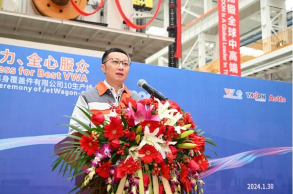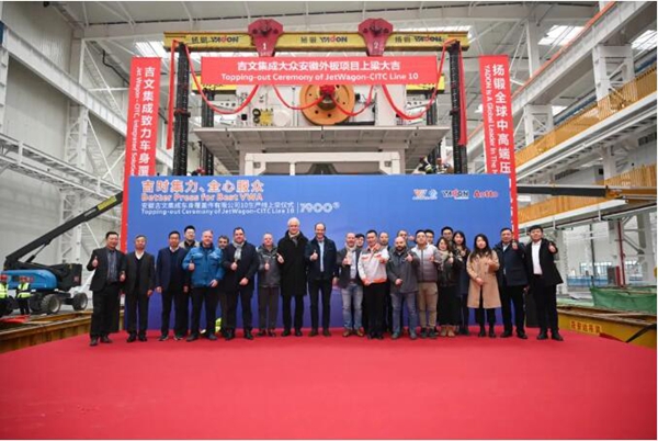 2024年1月30日,安徽吉文集成車身覆蓋件有限公司的沖壓車間濟濟一堂,在吉文、大眾、揚鍛等嘉賓共同見證下,7900噸大型覆蓋件沖壓生產線的上梁典禮成功舉辦。 ![]() 公司總經理董宏斌先生,首先對參與項目建設的各方代表感謝,他說在建的7900噸的大型汽車外覆蓋件全自動柔性沖壓生產線將是國內一流的大型智能沖壓生產線,具備斷續和連續同步生產模式,實現了全自動換模,生產效率達行業領先水平。