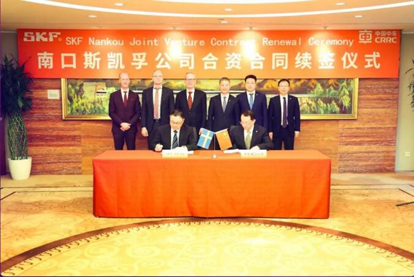 2月27日,中車(chē)北京南口機(jī)械有限公司與斯凱孚中國(guó)(SKF)在中國(guó)中車(chē)總部舉辦北京南口斯凱孚鐵路軸承有限公司延長(zhǎng)經(jīng)營(yíng)期限簽約儀式。