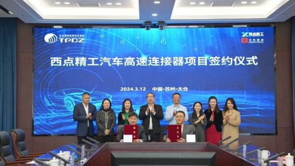 日前,西點精工汽車高速連接器項目簽約儀式在太倉港區舉行。市委常委、太倉港經濟技術開發區黨工委副書記、管委會副主任戚振宇,深圳市西點精工技術有限公司董事長鄧清華等共同見證簽約。