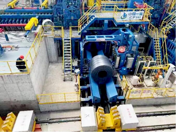 2250mm熱連軋生產線是山鋼永鋒臨港有限公司先進優特鋼產業基地二期項目,也是中國一重與山鋼永鋒臨港有限公司的首次戰略合作,更是中國一重近年來承制的工藝及設備配置最齊全、裝機水平最高的高端寬幅帶鋼熱連軋生產線。該項目基于板帶熱軋生產線全流程智能化工藝設計軟件系統,對工藝布置及設備配置進行了全流程優化。生產線采用了最先進的大減寬量定寬壓力機技術、節能化分段式粗軋除鱗技術、新一代雙工位無芯移送式熱卷箱技術、優化剪切曲柄式飛剪技術、三排集管式超高壓精除鱗技術、新型精軋機工作輥強力彎輥及橫移裝置技術、新型牌坊式強力夾送輥技術、可移出式強力卷取機技術等多項自主創新技術,并融合世界先進的自動化與智能化技術,著力打造一條具有典型性和標桿意義的高端熱軋生產線,引領國內智慧熱軋。