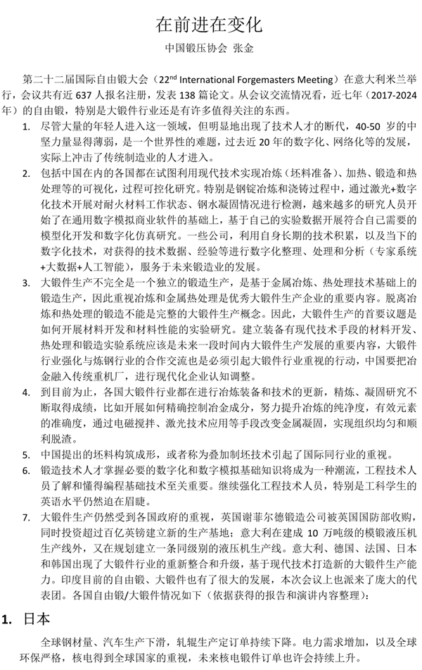 國際自由鍛最新情況,在前進在變化!