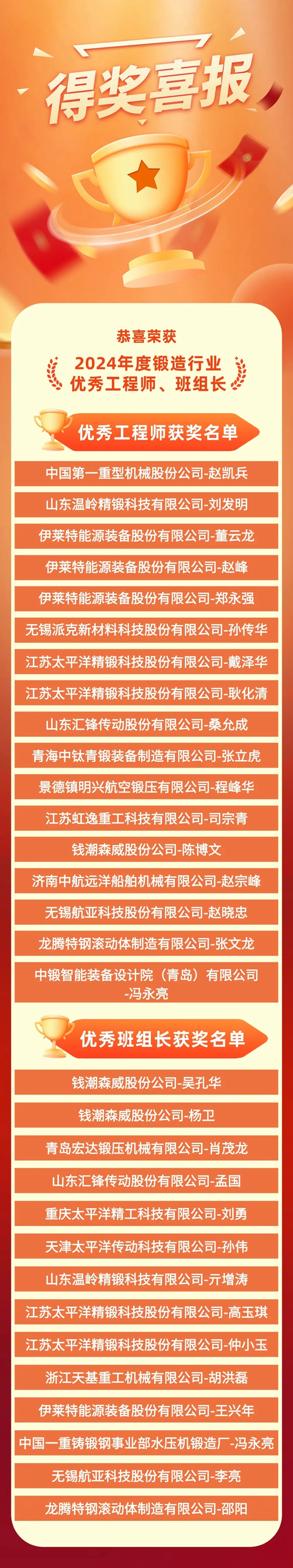 2024鍛造行業優秀工程師、班組長獲獎名單公布