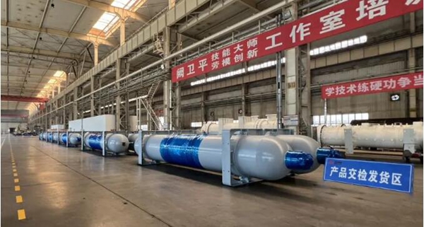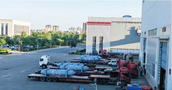 近日,由蘭石重裝承制的山東裕龍石化裕龍島煉化一體化項目(一期)2#50萬噸/年高壓聚乙烯(EVA/LDPE)裝置22臺高壓氮氣罐陸續完工發運。