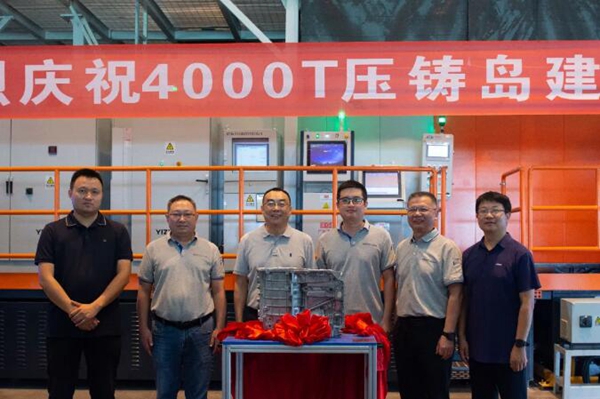 4000噸壓鑄島臺配置定量爐、噴涂、模溫控制系統、抽真空裝置、光電檢測、冷卻、伺服鋸站去料餅、打刻等周邊設備裝置,具備三合一集成殼體毛坯鑄造能力。4000噸壓鑄島臺的混合噴涂、局部擠壓、局部模溫控制、液壓式抽真空、定量化數字等技術,不僅可以適應多種類型的產品,還進一步提升了生產效率和產品質量,全力確保800V電驅動項目向更高質量推進。