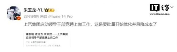 據上海汽車報社9月7日消息,上汽集團啟動領導干部競聘上崗工作。據悉,首批競聘工作已經于 8 月下旬啟動,實施單位涉及整車、零部件、移動出行和服務等板塊。