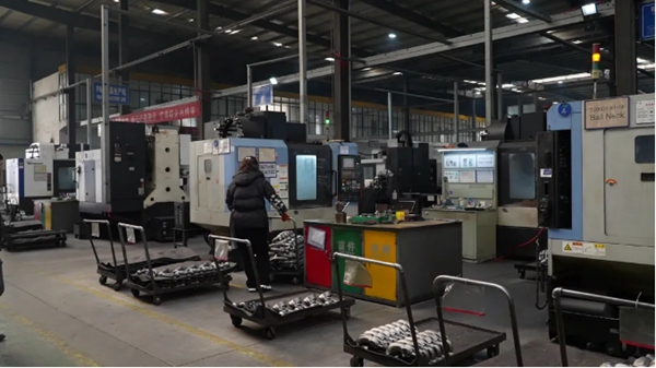 日前,在仝鑫精密鍛造股份有限公司連桿車間,6條生產線整齊排開,180余臺數控車床“火力全開”,發出陣陣轟鳴。工人們穿梭其中,一塊塊球頸接臂依次經過精銑、鉆銷孔、去毛刺、打標機等工序,最后做成成品對外銷售。 ![]() “我們現在這種五軸加工中心,生產效率有了很大提高。所有工序在這一臺設備上都可以加工完成,我們的產能也得到了大大的提升。”宜都市仝鑫精密鍛造股份有限公司生產部部長李麗軍繼續說:“我們2024年投入了135萬新增了一個龍門銑床,這對模具加工能力有很大提高,從原來的每年一萬噸,做到現在的3萬噸。”