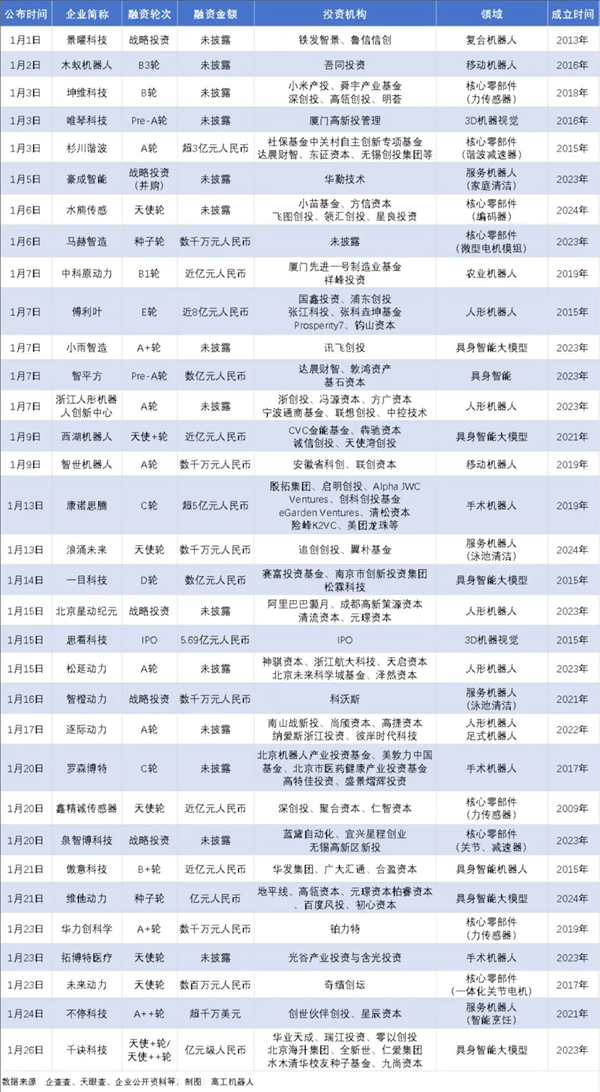 2025年開年,國內機器人行業迎來“開門紅”,相比2024年初機器人行業在資本市場遇冷、2024年下半年人形機器人升溫的局面,今年1月份融資事件密集涌現,技術突破與全球化布局成為貫穿始終的主線。