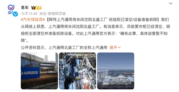 據媒體報道,上汽通用即將關閉位于遼寧沈陽的北盛工廠。