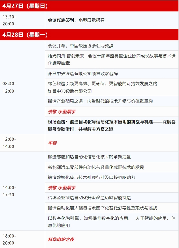 在當今內卷的大環境下生存并發展,企業必須全面普及數字化并擁有“智能工廠”這樣的高端利器,更要具備自我進化的能力,為了幫助行業企業“邁向高端化、引領智能化、踐行綠色化”,中國鍛壓協會將于2025年4月27-29日在河南許昌舉辦“2025鍛造自動化及信息化應用技術研討會”,今年為該研討會的第十屆盛會。