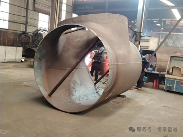 恒泰公司生產(chǎn)的大口徑熱壓三通,一直是公司的拳頭產(chǎn)品。公司原有的1600噸、2500噸、3000噸壓力機(jī)受技術(shù)限制,只能生產(chǎn)直徑2.4米以下的三通產(chǎn)品,產(chǎn)能受限。
