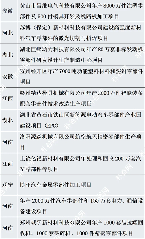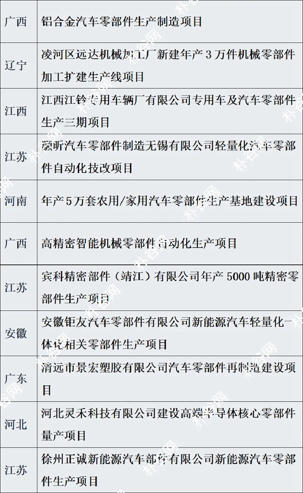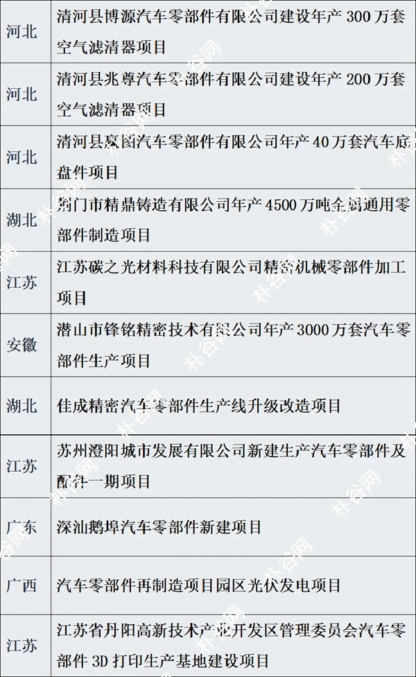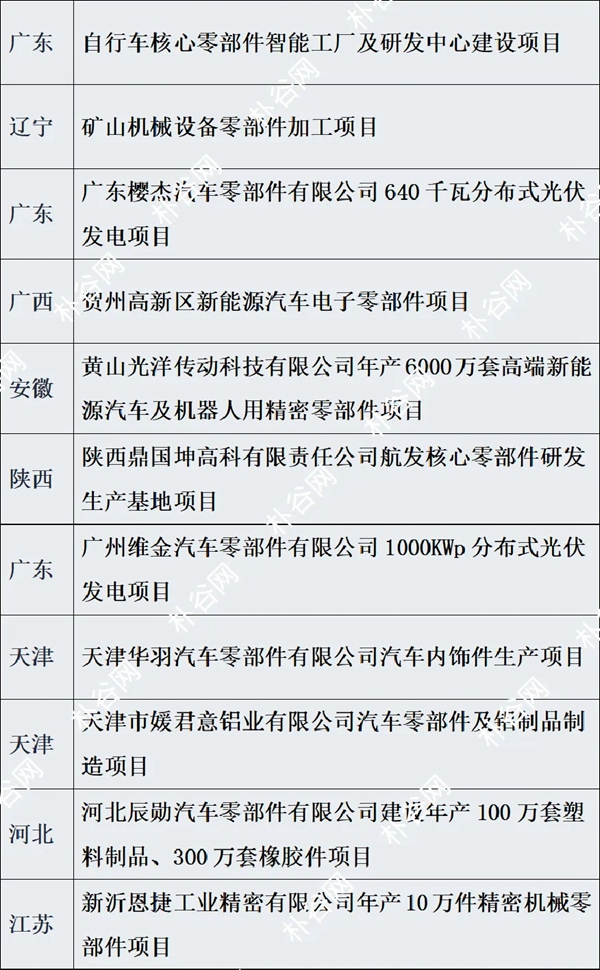 近日,樸谷網(wǎng)公布100個(gè)近期新建零部件項(xiàng)目名單。