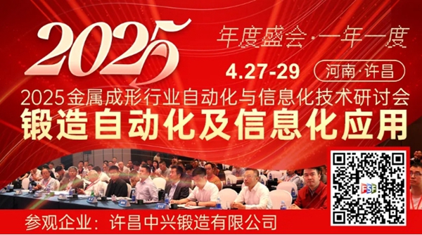 2025年4月27-29日,中國鍛壓協會將在河南許昌舉辦“2025鍛造自動化及信息化應用技術研討會”。截至4月21日10:00,已有100余家鍛造行業優秀企業確認出席。 已報名參會企業名單(以下名單排序不分先后)
