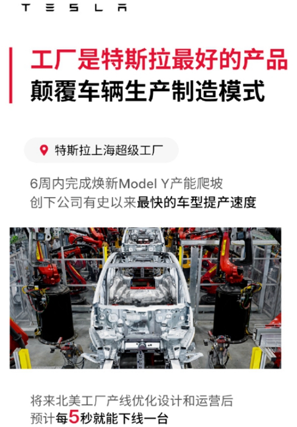 5月9日,特斯拉官微發文稱,其上海超級工廠6周內完成煥新Model Y產能爬坡,創下公司最快的車型提產速度。