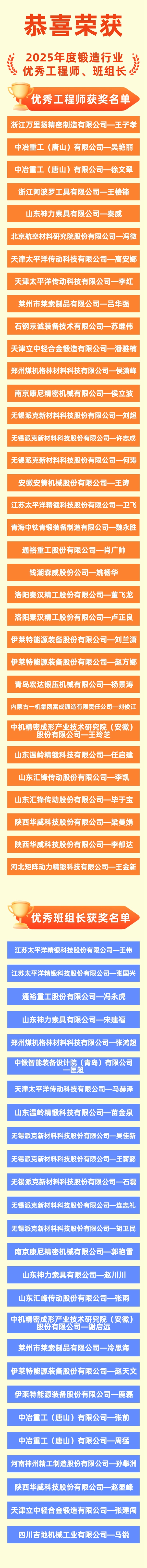 2025年度鍛造行業優秀工程師、班組長獲獎名單公布