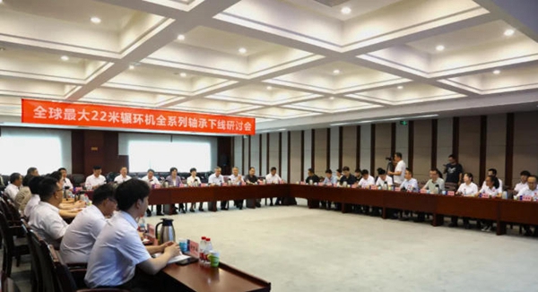 7月9日,全球最大22米輾環機全系列軸承下線儀式研討會在集團公司舉行。該系列產品的下線,打破中國高端軸承被國外壟斷的局面,填補我國在超大型、超重載環形鍛件裝備核心零部件領域的空白,標志著我國在超大型、超重載軸承的設計與制造領域再次實現“領跑”。