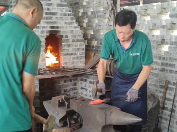 以鄧家刀為首,致力傳承千年大足鍛打刀技藝,著力打造集“生產+展示+展銷 +體驗+文化”為一體的工業旅游示范點,很有傳承和學習體驗意義;在新廠區規劃的非遺體驗區里,游客可近距離觀看匠人通過“紅打冷錘”工藝鍛打刀具,體驗從鋼坯到成品的128道工序。