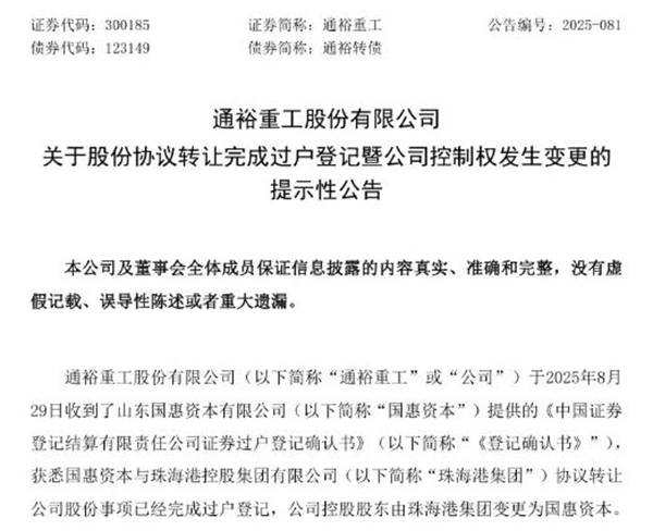 日前,通裕重工發布公告稱,公司控股股東和實際控制人發生變更,公司控股股東由珠海港集團變更為國惠資本,實際控制人由珠海市人民政府國有資產監督管理委員會變更為山東省人民政府國有資產監督管理委員會。 ![]() 通裕重工依靠綜合性研發制造平臺優勢,可以同時為陸上/海上風電的雙饋式/直驅式/半直驅式風電機組批量提供鍛件、鑄件和結構件產品,主要產品形式包括風電鍛造主軸、鑄造主軸、輪轂、機架、軸承座、轉子機殼、定子機座等。