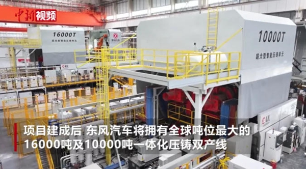 據中國新聞網消息,湖北武漢經開區軍山新城東風汽車一體化壓鑄產業化項目聯合廠房竣工驗收,標志全球最大的16000噸及10000噸一體化壓鑄雙產線正式落地,預計年產輕量化部件20萬件。