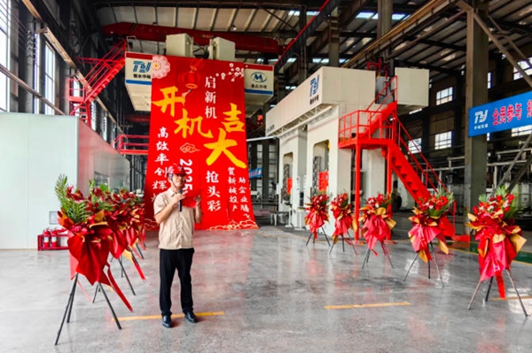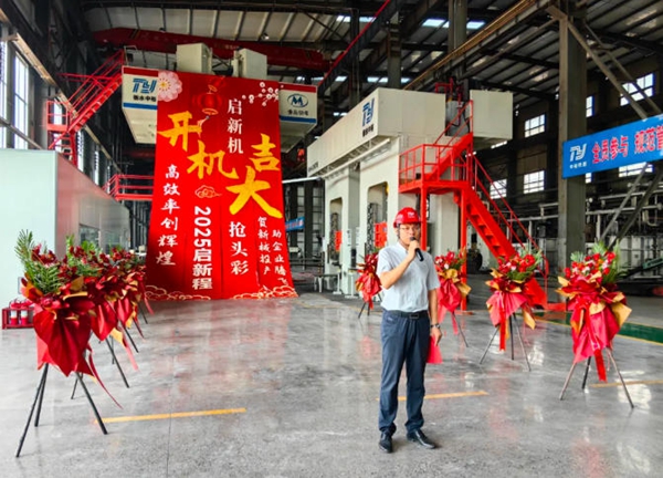 儀式由張洪富主持,現(xiàn)場(chǎng)氣氛熱烈。郭勇在致辭中表示,6300智能鍛造生產(chǎn)線的正式投產(chǎn),是公司多年來堅(jiān)持技術(shù)創(chuàng)新、加大轉(zhuǎn)型投入的成果。面對(duì)市場(chǎng)對(duì)高端鍛造產(chǎn)品日益增長(zhǎng)的需求,裝備公司要以此次投產(chǎn)為契機(jī),持續(xù)優(yōu)化產(chǎn)品結(jié)構(gòu)、提升服務(wù)水平,為客戶提供更優(yōu)質(zhì)的鍛造產(chǎn)品與解決方案。上午9點(diǎn)08分,隨著郭勇宣布“6300智能鍛造生產(chǎn)線正式開機(jī)”,張洪富按下啟動(dòng)按鈕,生產(chǎn)線成功開機(jī)運(yùn)行,現(xiàn)場(chǎng)鍛出第一件通紅的半成品。