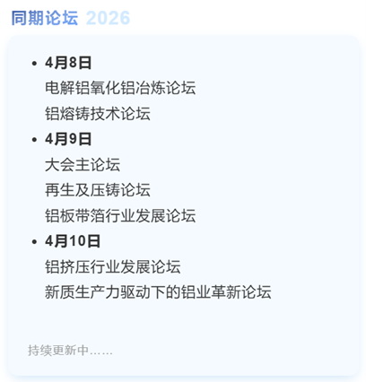 七大垂直論壇覆蓋鋁全產業鏈,將深度解構鋁全產業鏈升級路徑,涵蓋原料、熔鑄、再生壓鑄、板帶箔、擠壓等關鍵環節,更是新增“新質生產力革新論壇”,為全球化突圍提供實戰工具箱。與全球鋁業共赴一場“技術立標、通海共贏”的革新之旅!